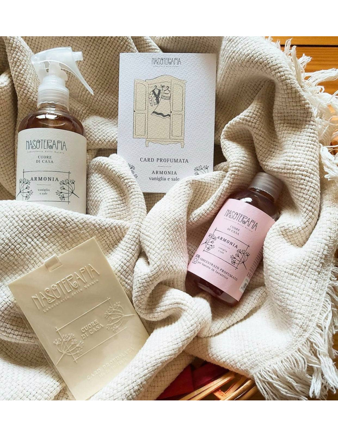 Preziosa card profumata ideale da riporre nei cassetti e negli armadi per regalare alla biancheria e agli indumenti un’avvolgente nota di vaniglia e sale. Lasciati avvolgere dall’impalpabile fragranza di ARMONIA e dona una nota di dolcezza, leggera e duratura, ai tuoi capi.