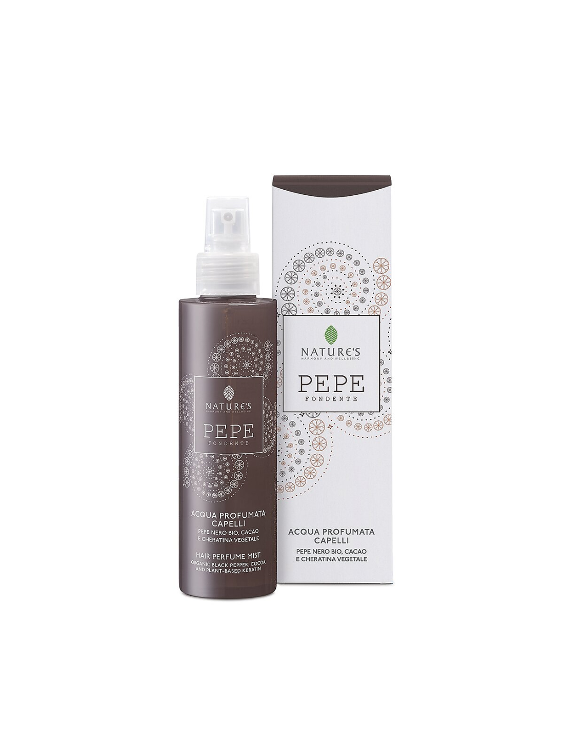 Quest'acqua profumata dona una delicata sensazione di freschezza, avvolgendo i capelli in una nuvola vibrante e calda. La fragranza è un cocktail gourmand di Pepe Nero biologico e Cacao. Arricchita con cheratina vegetale, non solo profuma, ma aiuta anche a ristrutturare i capelli donando visibile lucentezza e svolgendo un'azione tonificante e antiossidante. Con il 95% di ingredienti di origine naturale, è il tocco finale per una chioma curata e profumatissima.