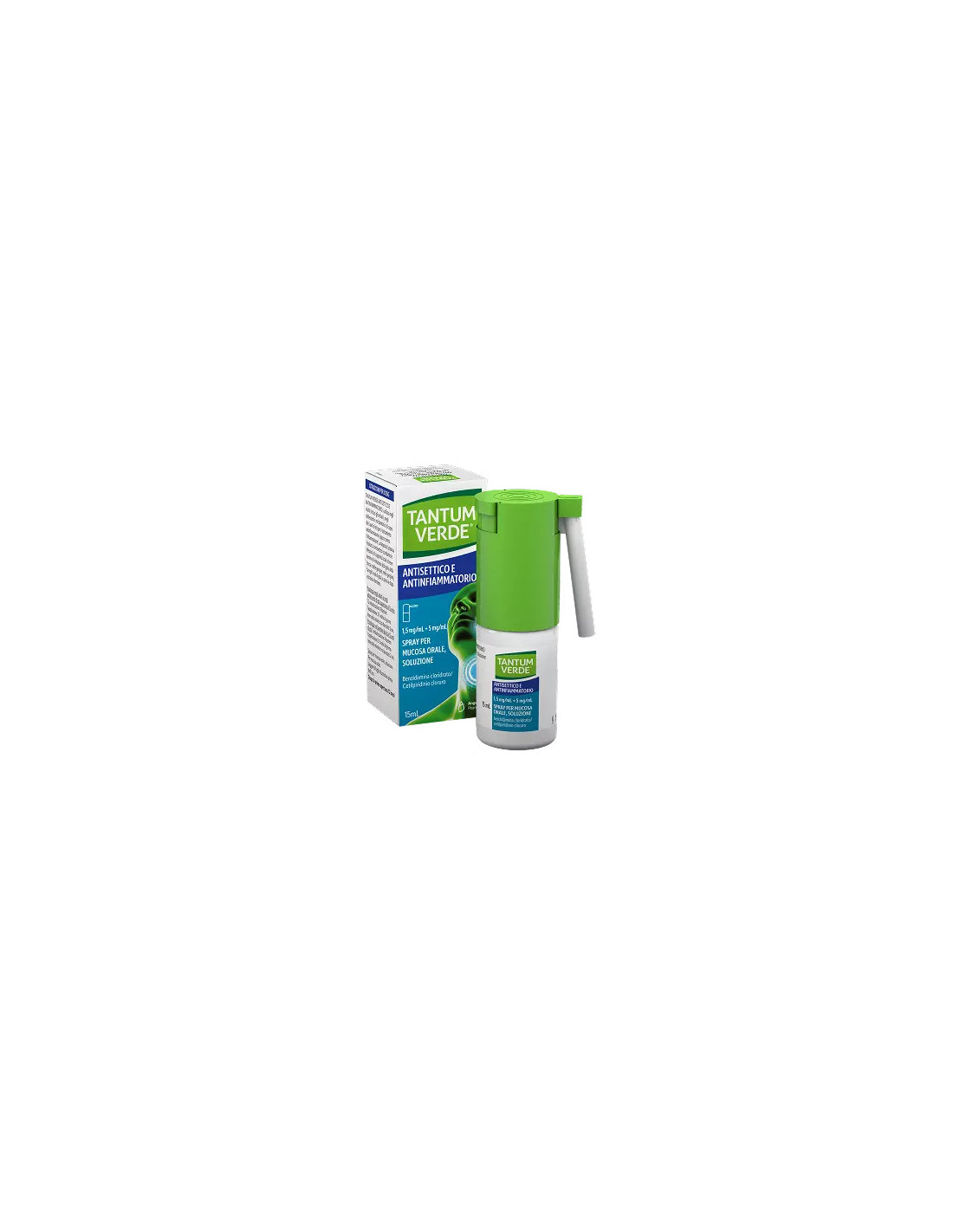 TANTUM VERDE ANTISETTICO E ANTINFIAMMATORIO 1,5 mg/mL + 5 mg/mL spray per mucosa orale, soluzione