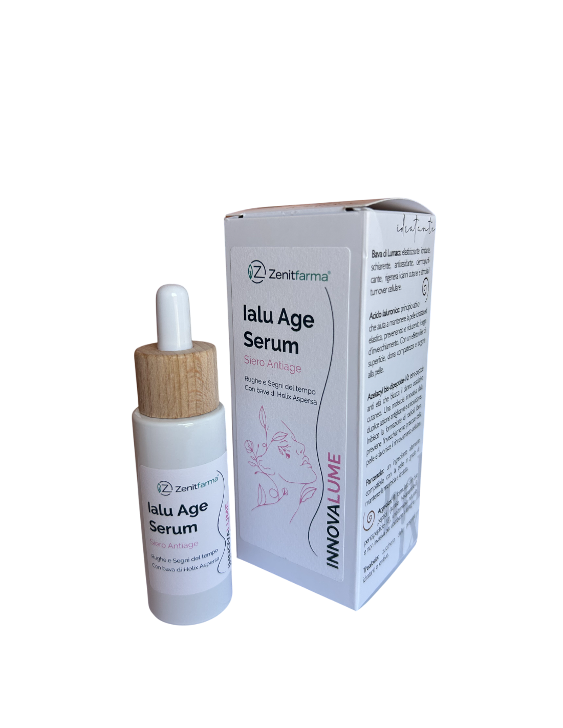 Innovalume Ialu Age Serum è un prezioso siero viso anti-età con marcato effetto filler, formulato per contrastare i segni del tempo grazie all'azione combinata di Bava di Lumaca Bio e un' altissima concentrazione di Acido Ialuronico. Un trattamento intensivo dalla formula innovativa, arricchita con tre peptidi anti-età di ultima generazione, agisce su più fronti: aiuta a distendere e riempire sia le rughe profonde che quelle d'espressione, restituisce elasticità, compattezza e tono alla pelle secca o atonica, combatte l'invecchiamento precoce e favorisce la rigenerazione cellulare. Ideale per avere una pelle visibilmente più soda, compatta e idratata, da applicare mattina e sera sotto la crema abituale.